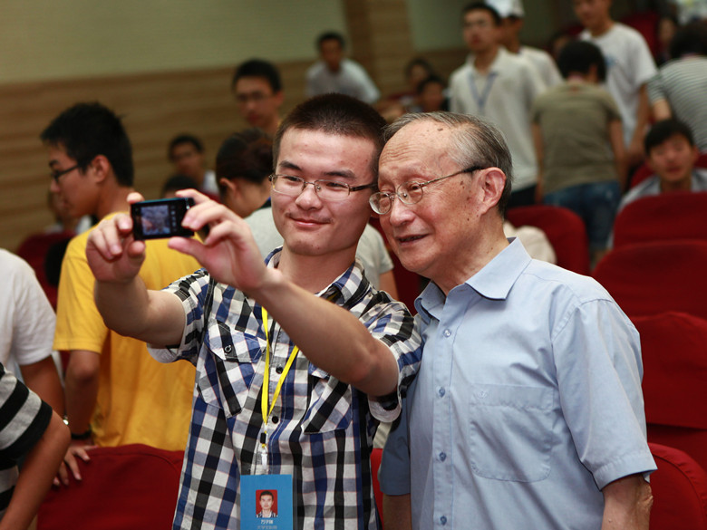 中国科学院院士、著名机械工程专家、教育家杨叔子院士7月17日上午作客“求是”科普讲坛,为华中科技大学的营员师生们带来以“历史的启思”为主题的科学盛宴,以飨师生。讲座伊始,杨院士介绍了华科六十多年发展过程中形成的一些基本特征,并以此为契机和开篇,杨院士进而通过简约易记的语句向营员师生们介绍了校风校训及历史中形成的以“态度严谨、作风严肃、思维严密、步骤严格”的“四严”和有“做老实人,讲老实话,干老实事”的“三老”为主体的华中科技大学精神。在自由提问环节中,杨叔子结合自己的成长经历和学习经验向同学介绍如何获取记住更多的知识。讲座最后,杨叔子向在场师生表达自己的期望和寄语:“同学们,世界是你们的,未来是你们的,中国的前途是你们的!”当日下午,分营师生还参观了未来科技城和中美清洁能源中心。