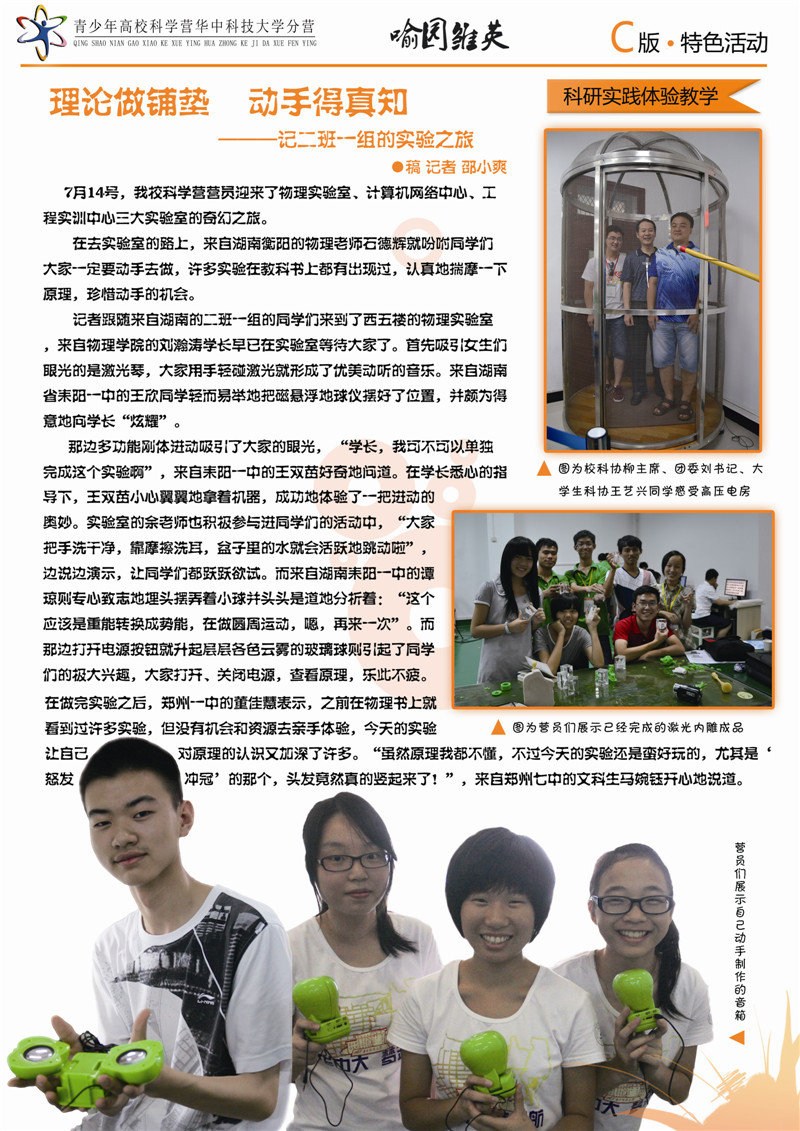 2019年青少年高校科学营湖北营活动综述--坚守育人初心 共筑科技之梦