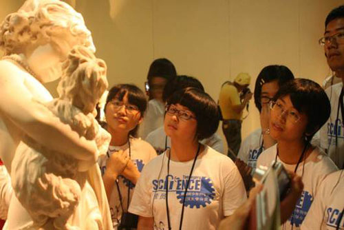 “渡远荆门外,来从楚国游”,7月19日迎来2012年全国青少年高校科学营湖北分营的校外联营日。全体营员以所在高校分营为单位,在湖北省青少年科技中心的统一安排下分批次的参观了湖北省博物馆和武汉科技馆。一个是湖北历史的积淀,文化的精髓,承载着荆楚土地最值珍藏的记忆,体现着荆楚人文的最高智慧。另一个则是普及科学知识,传播科学思想,展示科技成果的科技教育活动场所。两个场馆各有所长,相得益彰。