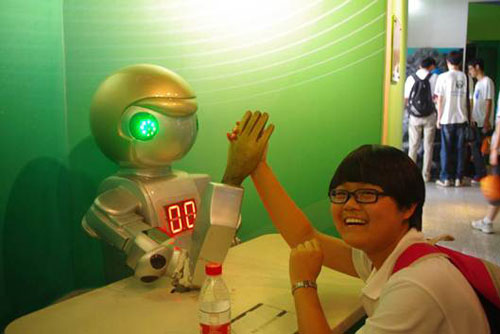 与机器人进行握力测试