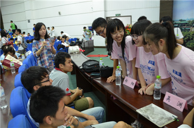 中国地质大学(武汉)分营营员在逸夫博物馆报告厅与在校优秀大学生面对面交流。