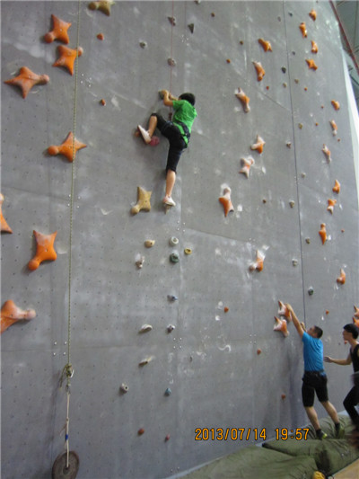 7月14号晚上七点,中国地质大学(武汉)的营员们在体育老师的指导下整齐的进入到亚洲最大的室内攀岩馆——中国地质大学(武汉)攀岩馆,老师先对攀岩活动进行了介绍,让同学们对攀岩有了更多的了解。接着地大攀岩队优秀队员进行表演攀岩——岩壁上的攀岩。专业队员们的精彩表演,让营员们深为折服,现场不时发出惊叫声和掌声。