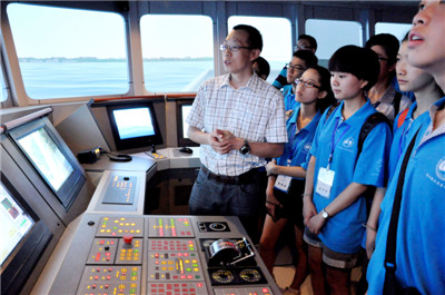 武汉理工大学分营的营员们在该校余家头校区航海楼,从教学科研体验和文化成果观览两个层面参观了交通行业多个领域的特色项目。