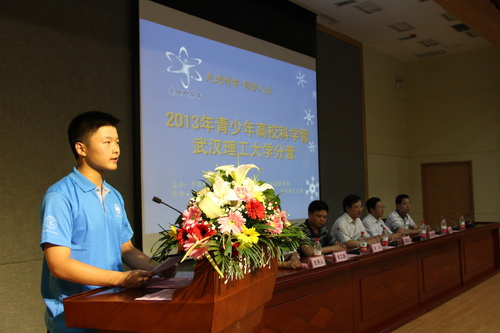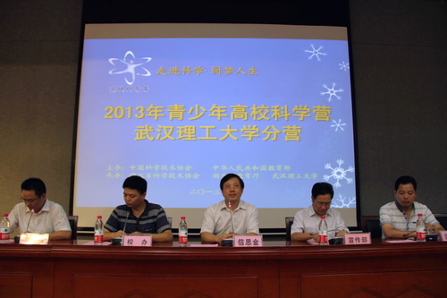 7月12日下午,2013年高校科学营武汉理工大学分营开营仪式在我校会议中心隆重举行。来自湖北、湖南、河南、江西和安徽5省44所中学的200名中学生营员、80余名志愿者和相关工作人员参与仪式。校党委副书记信思金及各相关职能部门的领导出席了此次开营仪式。开营仪式由营长、学生工作部部长赵海信主持。