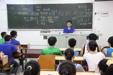 晚上7时,各个班的班会准时在指定教室召开,班级活动丰富多彩,各有特色,妙趣横生,营员都乐此不疲的参与到这个刚刚组建的集体中。在两个小时的时间里,来自省内外及港澳台等地的营员由最初的互不相识到最后打成一片,玩得不亦乐乎。